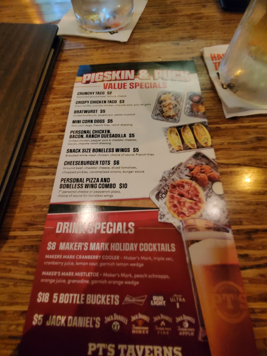 Two quarter pound patties, PT’s signature burger sauce, lettuce, tomato, pickle, red onion, brioche bun